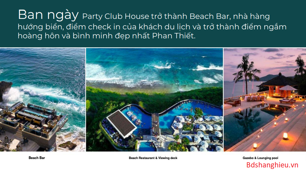 - Beach bar, Pool bar, VIP lounge, Sky Clubhouse hiện đại