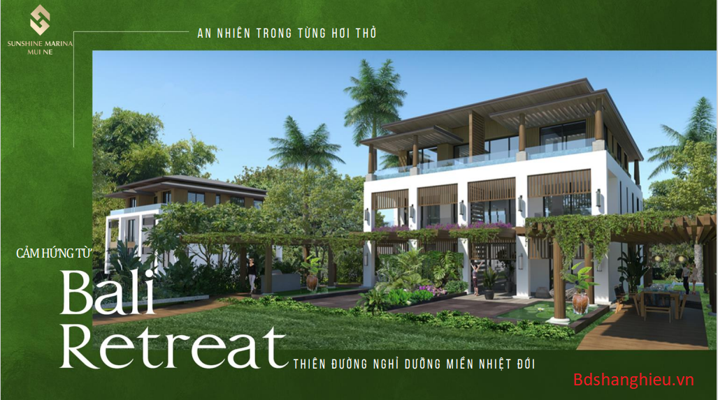 Lấy cảm hứng từ thiên đường nghỉ dưỡng Bali, phân khu Indochine tại Sunshine Marina Mũi Né kiến tạo một không gian sống như một spa, mang đậm chất kiến trúc Đông Dương kiều diễm. Mỗi căn biệt thự là sự kết hợp hoàn hảo giữa truyền thống và hiện đại, giữa phương Đông và phương Tây, giữa sự kín đáo, trầm mặc và nét sang trọng lôi cuốn.