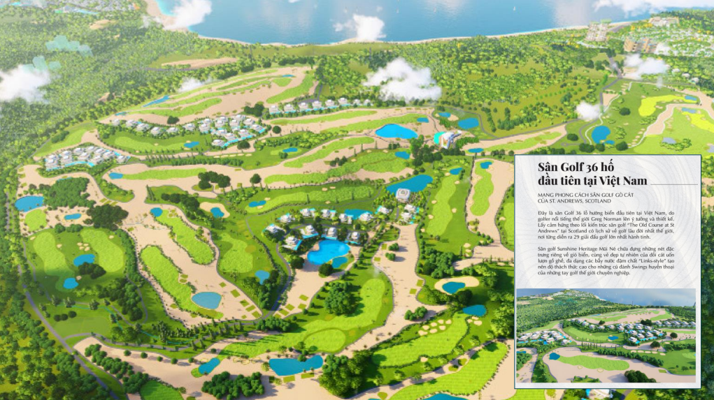 - Phân Khu Golf & Villas: Sân golf 36 hố chuẩn quốc tế